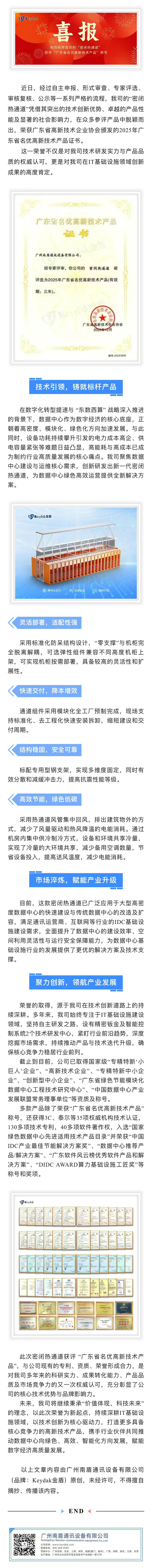 喜報|我司密閉熱通道獲評“廣東省名優高新技術產品”稱號